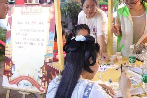 此外,现场也有许多传统文化活动的体验摊位,剪纸、团扇、飞花令、投壶及对诗等。到场的街坊可以在同一时间段内体验多种传统活动,不仅能够大展身手,还能收获惊喜小礼品。
