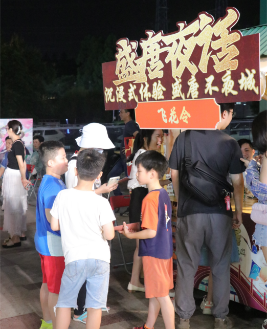 在活动现场,能够看到百官开市、花魁游街,还能感受到唐朝的歌舞升平。同时还有“捕头巡游”等趣味活动及剪纸、投壶、飞花令等一系列的传统活动,内容丰富,不仅能够身临其境感受盛世大唐,还能够在游玩中了解中国传统文化的魅力。