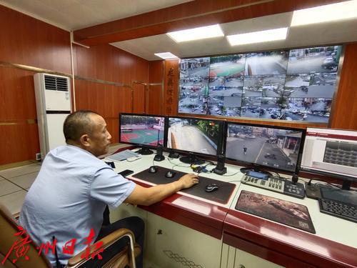 番禺区东环街龙美村综合治理中心,治安视频监控室。