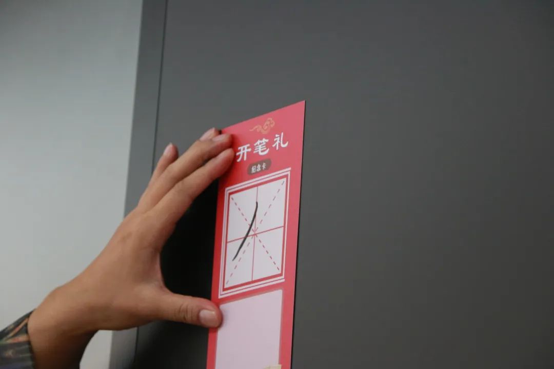 詹天佑小学校长为孩子们带来了启蒙教育第一课。现场,陈国泰校长带领孩子们一起学八德,知孝、悌、忠、信、礼、义、廉、耻。随后,非遗大师李显达先生开展“书法微课堂”,为孩子们展示楷体“人”字的写法。开笔启蒙写“人”字。跟随学习后,孩子们分别回到自己班内,一笔一画地写下了“人”字。