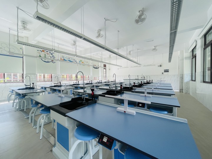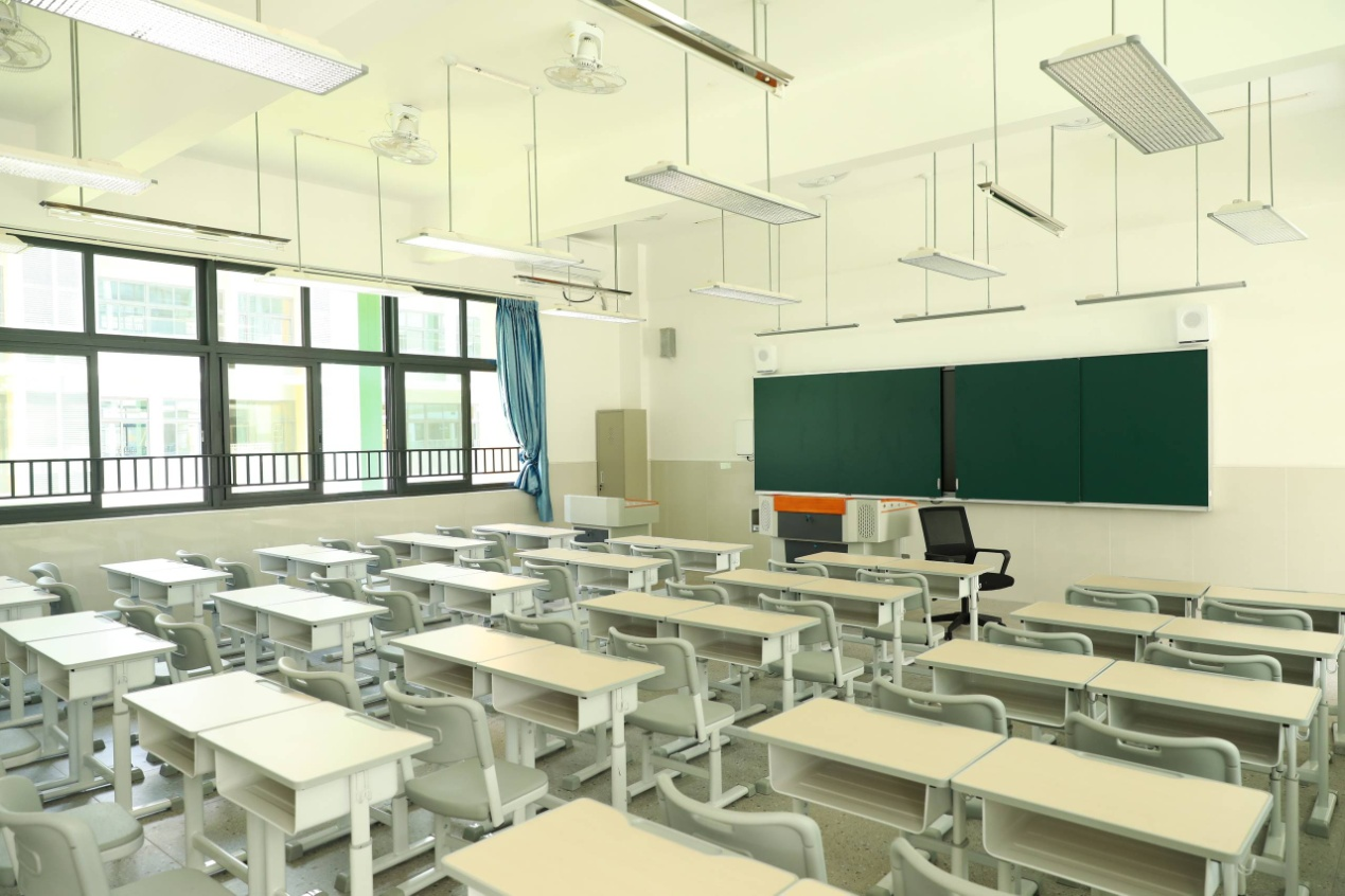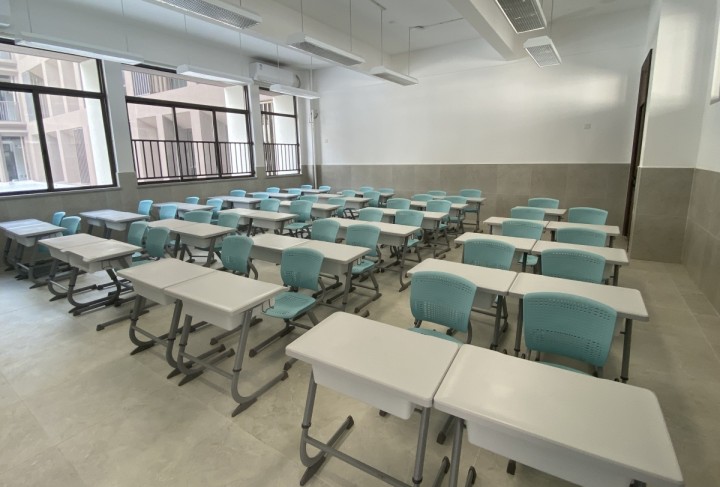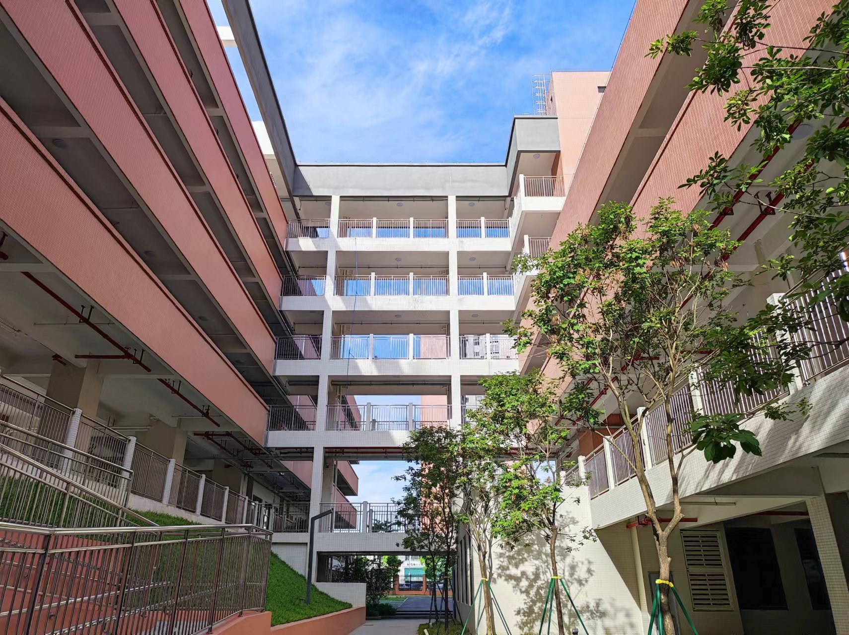 该校外观以红色为基调,共有三栋教学楼,建有24间教室,配备有空调、护眼灯、一体机等,同时配备功能场室和活动区。
