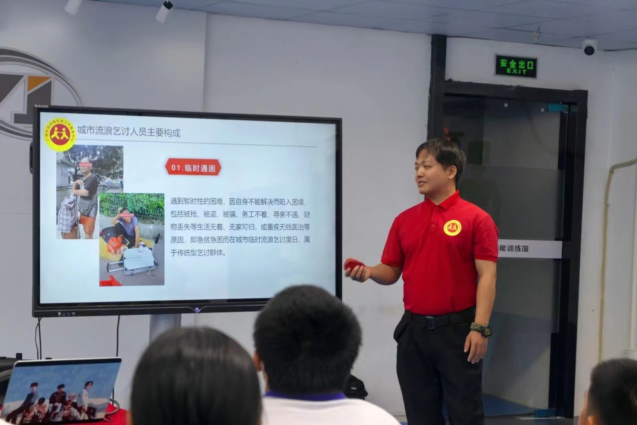 本次活动邀请到了资深救助志愿者骨干林金清为志愿者们开展专项志愿服务培训。林金清讲师首先为志愿者们传授了该志愿服务的内容、服务流程、注意事项等基本理论知识,向志愿者们讲解了在街头帮助服务对象的注意事项,并针对志愿服务过程中可能遇到的情况,辅以电影及案例分享应对方式。现场参与志愿者认真学习,积极同讲师互动。