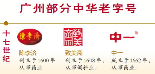 广州现存的老字号中,历史最久的当属陈李济,它是全国知名的中华老字号,诞生于明万历二十八年(1600年),距今已有423年历史,比北京同仁堂的创立还要早69年。这家老字号的诞生地在今广州北京路,这里自古文化兴盛,商业繁荣,见证了广州千年商都的传奇故事。继陈李济之后,北京路一带又出现了致美斋、中一药业等中华老字号,并延续至今。它们均为前店后坊,既生产商品,又临街开铺,既得到这里商业氛围的滋养,又延续了这一带的商业繁华。