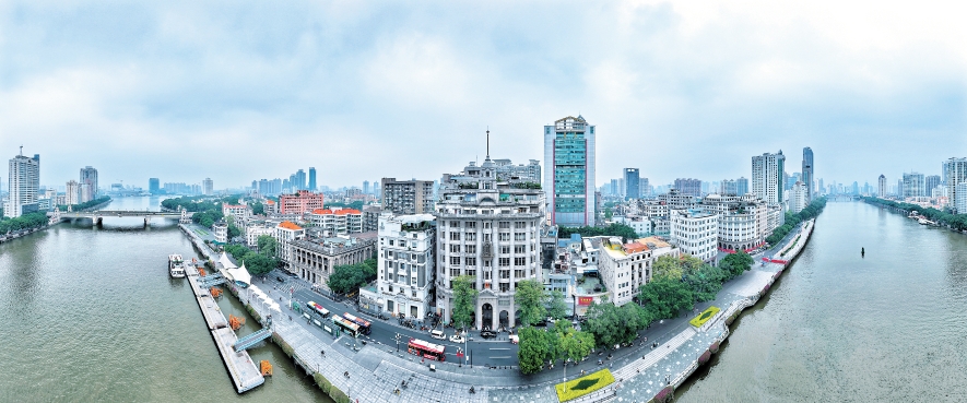 19世纪末20世纪初,西关的商圈扩展到珠江北岸的长堤,集中在今西起人民桥,东至海珠桥一带。“上海有外滩,广州有长堤”,说的就是当时这一带的商业之兴旺。恰逢其时,又一批老字号从长堤崛起,新亚大酒店、城外大新(今南方大厦)、新华大酒店、爱群大酒店是其中翘楚。这些老字号的设计师和经营者大多重视西学,令它们与骑楼共生,不仅建筑硬件借鉴欧美、东南亚风格,还在运营、管理、服务等方面也大胆引进当时外国先进理念,一时风头无两,佳话连连。
