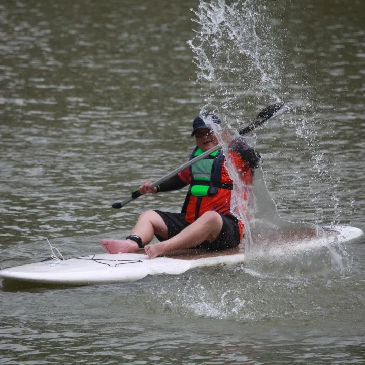 由于桨板多为单边划行,在桨板上的姿势可站、可跪、可坐、可趴、可躺等,对于零基础的新手“小白”来说非常容易上手。学员们下水体验十分钟左右,便掌握动作的基本要领。