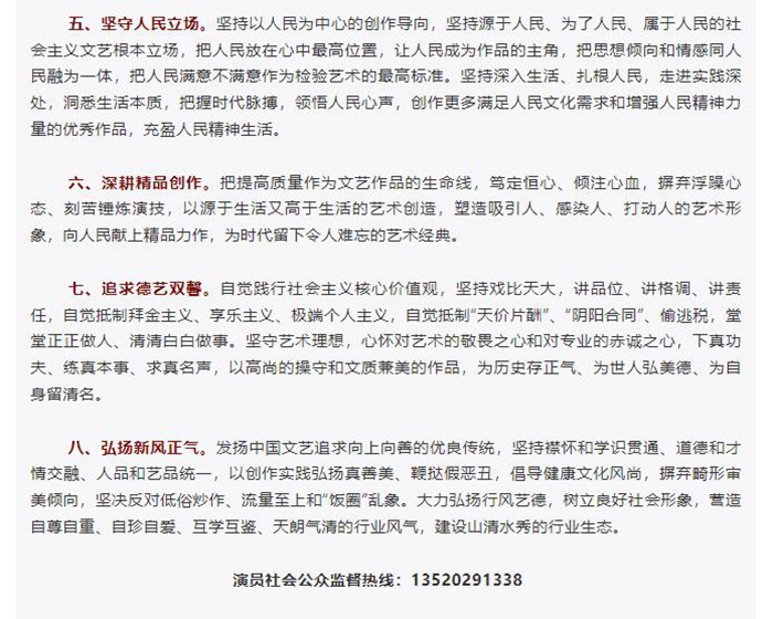 中国广播电视社会组织联合会演员委员会《新时代演员职业道德准则》截图。