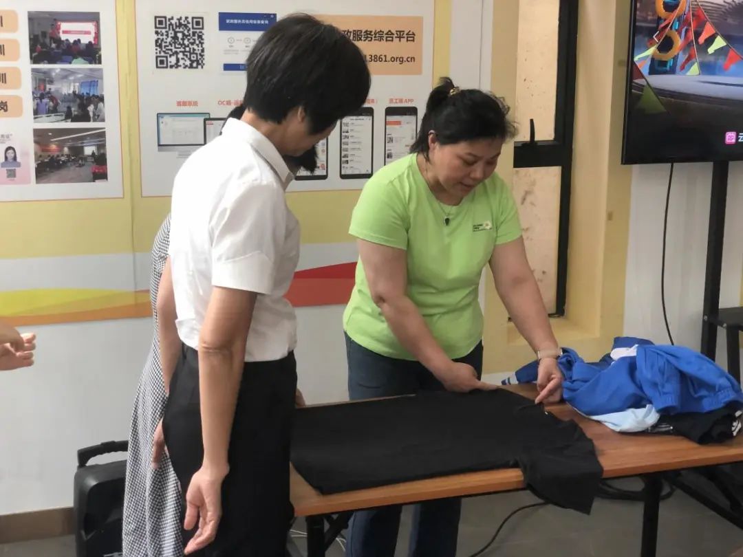 本次培训班由家政讲师裴中娟主讲。课堂上,裴中娟讲述了日常生活中比较常用的收纳小技巧,同时告诉学员家里空间整合利用的方法。在折衣教学过程中,裴中娟详细讲解了日常生活中不同衣物的折叠技巧,邀请学员动手学习,帮助学员掌握衣物收纳要领。