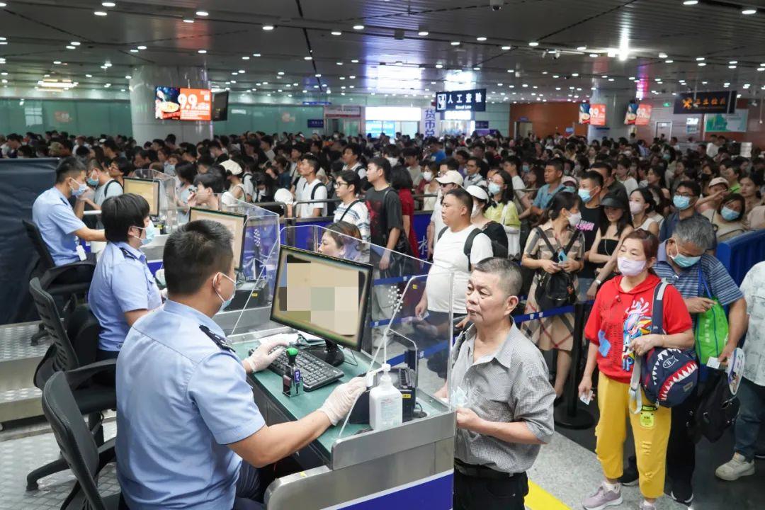 暑期期间,拱北口岸出入境旅客数量达1800万人次,珠海边检总站拱北边检站开足查验通道,保障旅客顺畅通关。