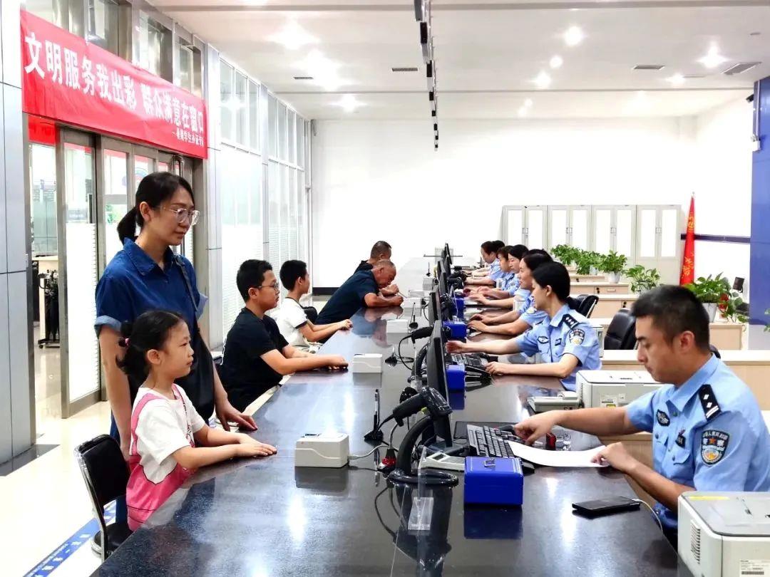 △7月18日,洛阳市公安局出入境管理窗口移民管理警察为暑期学生办证提供专场服务。