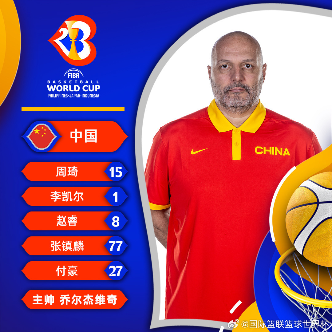 本场比赛中国队首发阵容由付豪、李凯尔、张镇麟、赵睿、周琦组成。