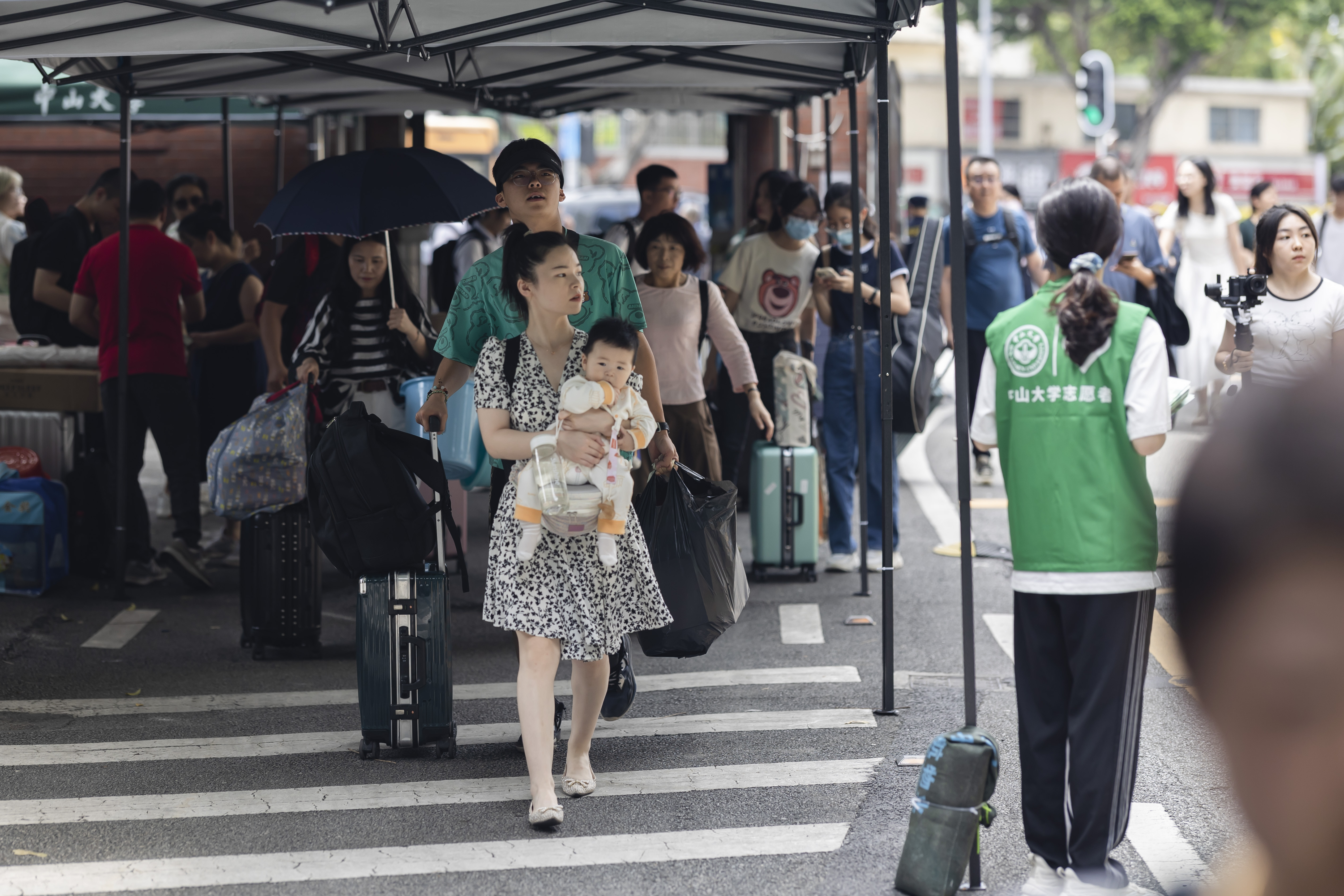 上午10时许,在广州校区南校园,大量家长陪同新生步行入校,呈现出“拖家带口”其乐融融的景象。有的妈妈特意穿着旗袍跟在孩子后面,有的姐姐边说边笑来送弟弟,手里还抱着熟睡的小孩。一位老人精神矍铄来送曾孙,帮着拿行李,记者一问才知对方有84岁了,就是广州本地人。