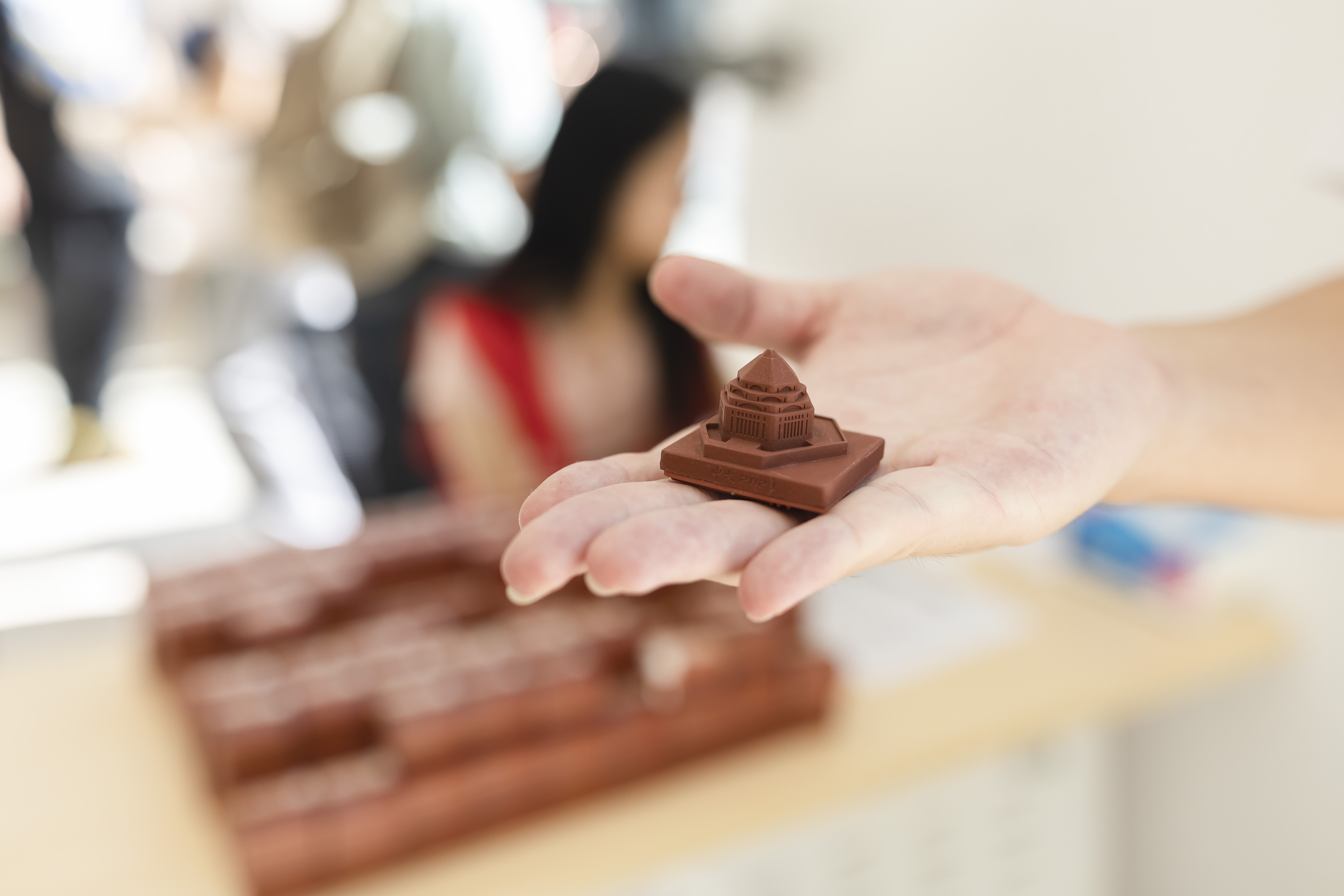 拼图小砖到底怎么拼?拼图完成后获得的校训+建筑印章是什么样子的?现场,新生很关心这些问题。原来,每块小砖背面印有独一无二的“行-列”编号,他们在展架上找到的相应位置,就可以准确定位。每位新生完成拼图后都将获得中大建筑印章盲盒1个,立体的建筑模型将三校区五校园的特色建筑生动呈现,怀士堂、东校园图书馆、天琴中心、北校红楼、深圳校区图书馆,于方寸之间,栩栩如生。