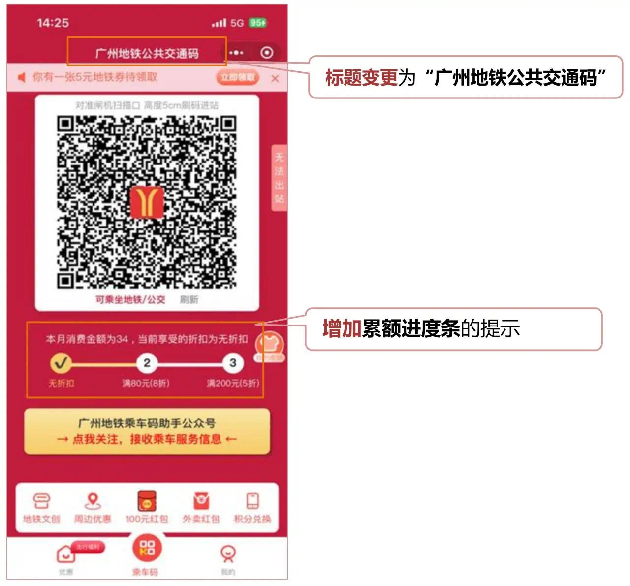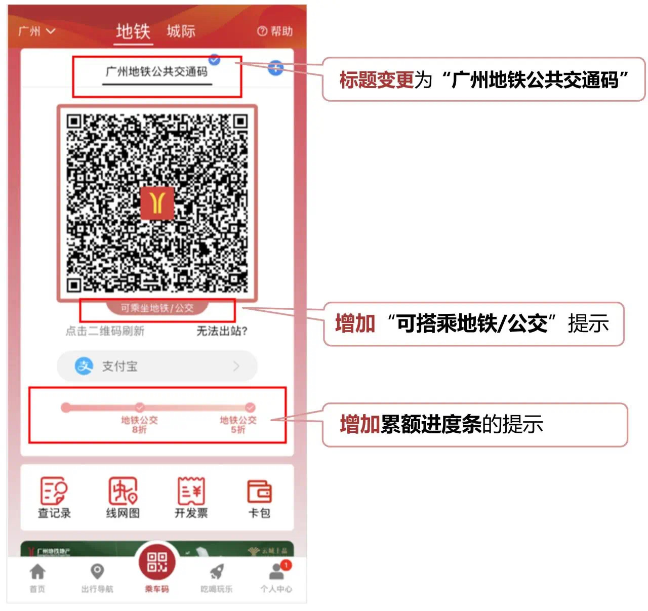 “广州地铁乘车码”小程序届时将自动升级为“广州地铁公共交通码”