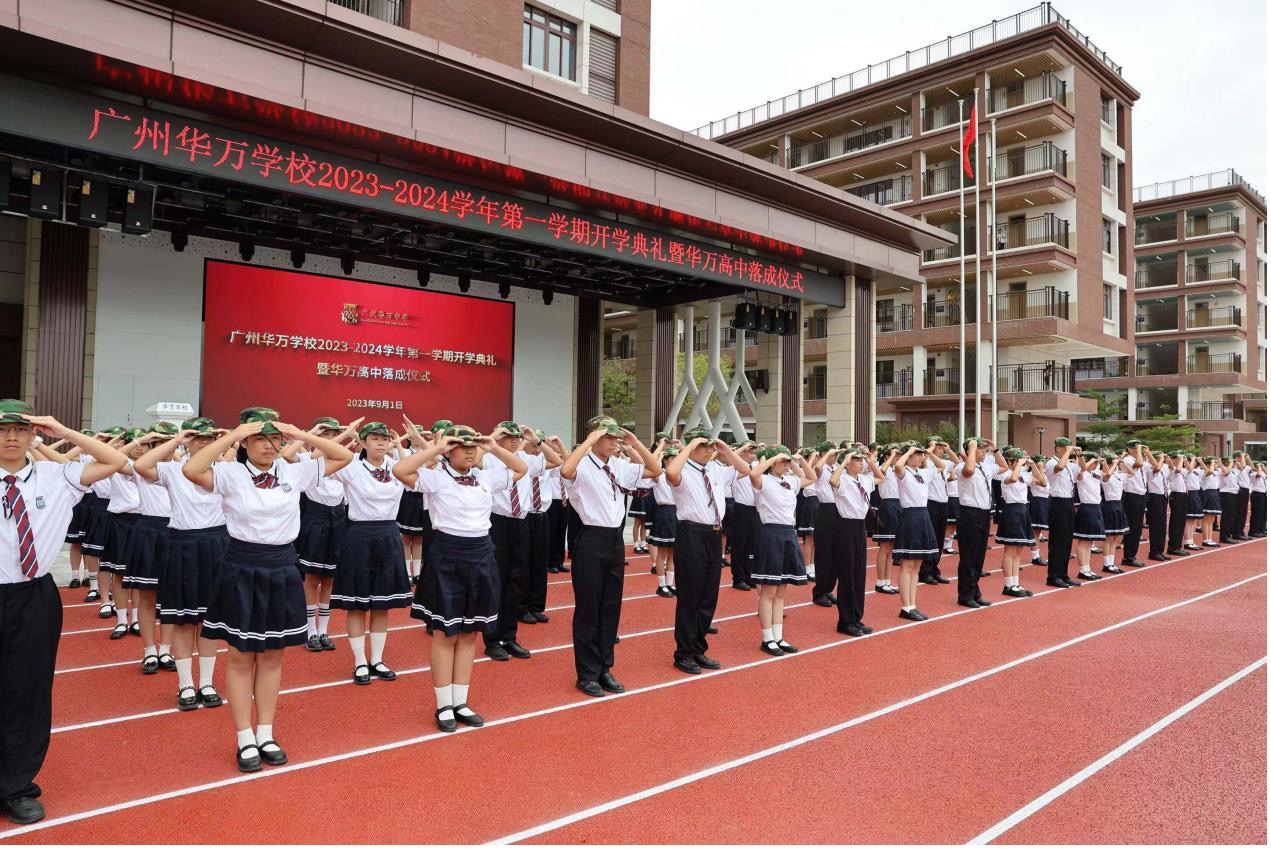 位于花都区的广州华万学校也在9月1日上午举行2023-2024学年第一学期开学典礼暨华万高中落成仪式。