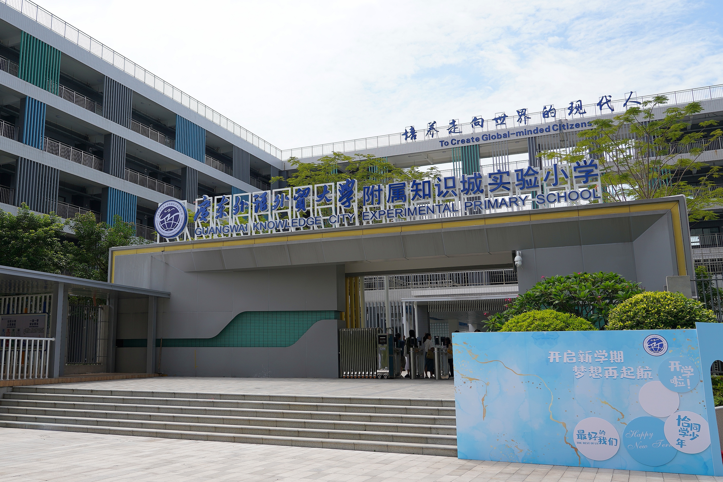 广东外语外贸大学附属知识城实验小学是由广东外语外贸大学与黄埔区教育局合作举办的以外语教育为特色的公办小学。学校分为南、北两个校区。南校区为于今年9月开办的新校区,坐落于广州市黄埔区尚景西街1号,镇龙地铁站上盖,办学规模为24个教学班。