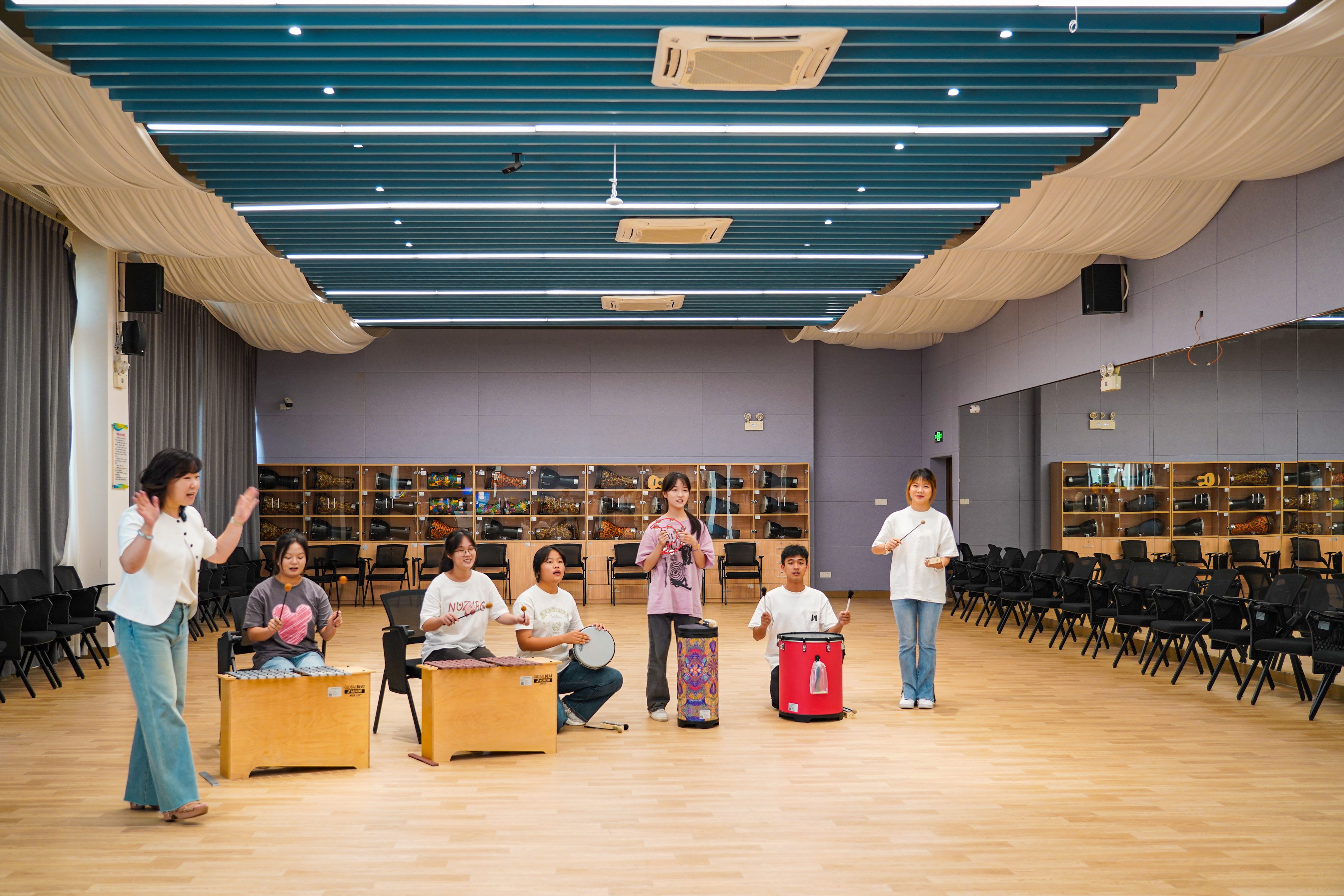 “围个圆圈,小、小、小,你好!你好!你好!”在广州幼儿师范高等专科学校(简称广州幼专)学前教育实训中心的奥尔夫音乐室里,老师正在教授学生如何带领幼儿领悟大和小的概念。