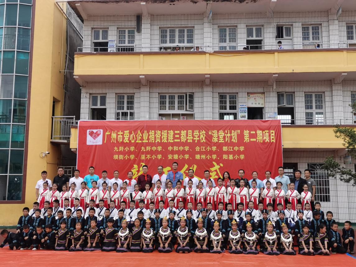 作为中国唯一的水族自治县,三都县的教育面貌提升有着重要意义。为了帮助当地撕掉“教育弱县”的标签,黄埔区不遗余力帮助当地改善办学条件、提升教育质量、提升师资水平,持之以恒的投入结成了硕果累累,如今当地流传着一句话:“三都最好的建筑是学校,最美的风景在校园。”