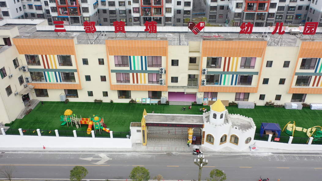 走进凤羽街道城南社区,最宽阔的地块建成了三都黄埔幼儿园,设施健全的教室、设计独特的阅读区、安全有趣的户外场地……这所于2019年开办的幼儿园如今在当地首屈一指,不仅解决了周边社区和城南搬迁社区幼儿就近就读问题,还优化了当地教育资源配置,为“最柔软人群”提供“最安心的照护”。