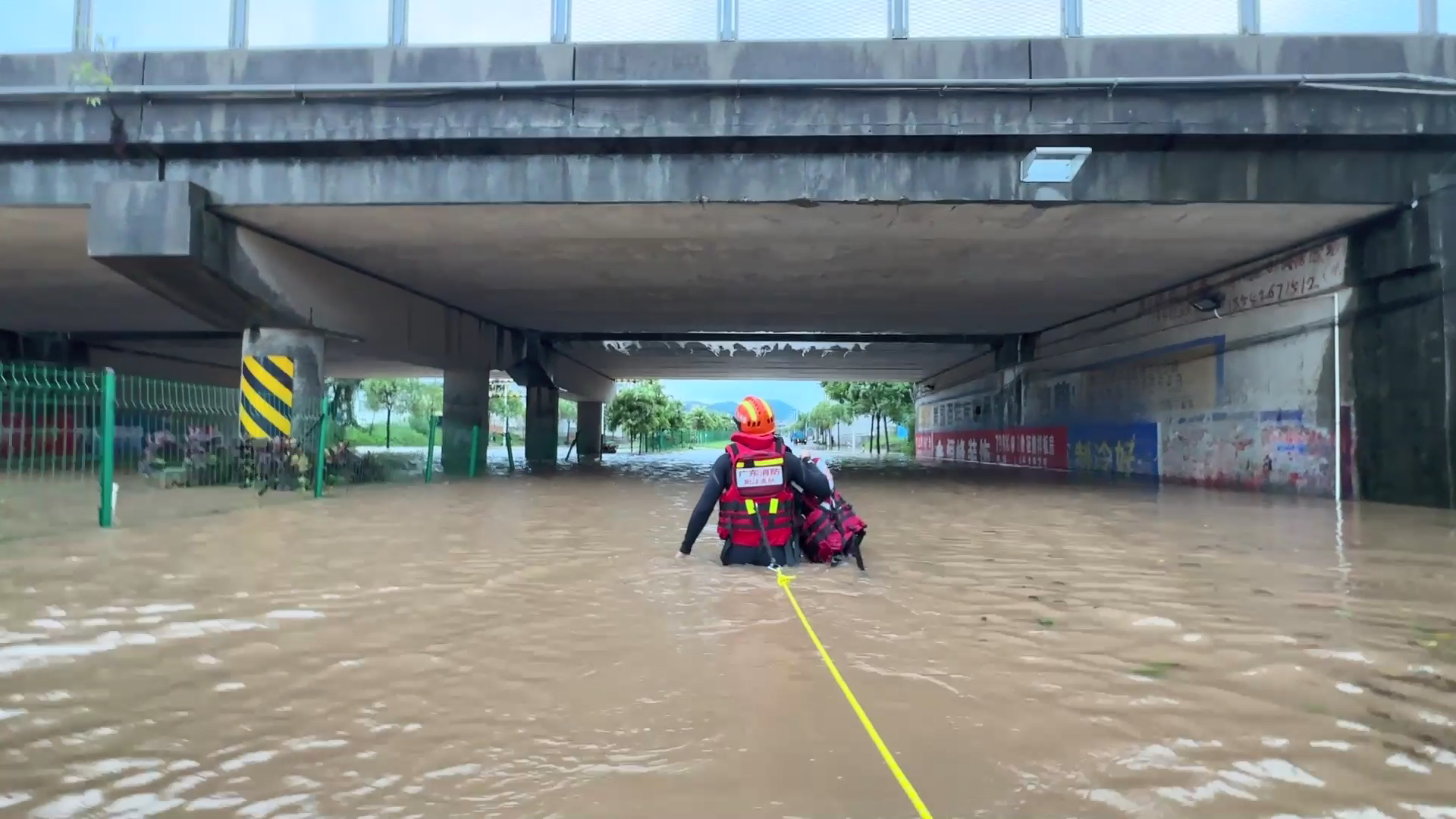 受台风“苏拉”影响,广东省阳江市阳东区遭遇强降雨。9月2日12时54分,阳江市119指挥中心接到报警称:阳东区十八子饭店对面三宝厂附近高架桥有车被淹,有人员被困车内。接到报警后,指挥中心立即调派东城消防救援站2辆消防车、8名消防救援人员赶赴现场救援。