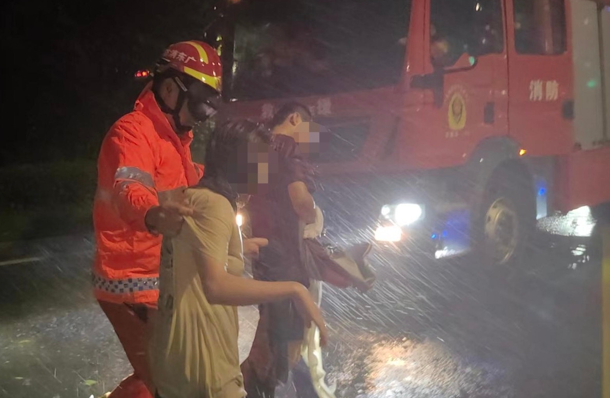 记者从广东省消防救援总队获悉,9月2日凌晨,广东省珠海市斗门区白蕉消防救援站指战员处置完一宗警情后,在归队途中发现了3名群众被困路上。消防救援人员及时伸出援手,帮助群众脱困。