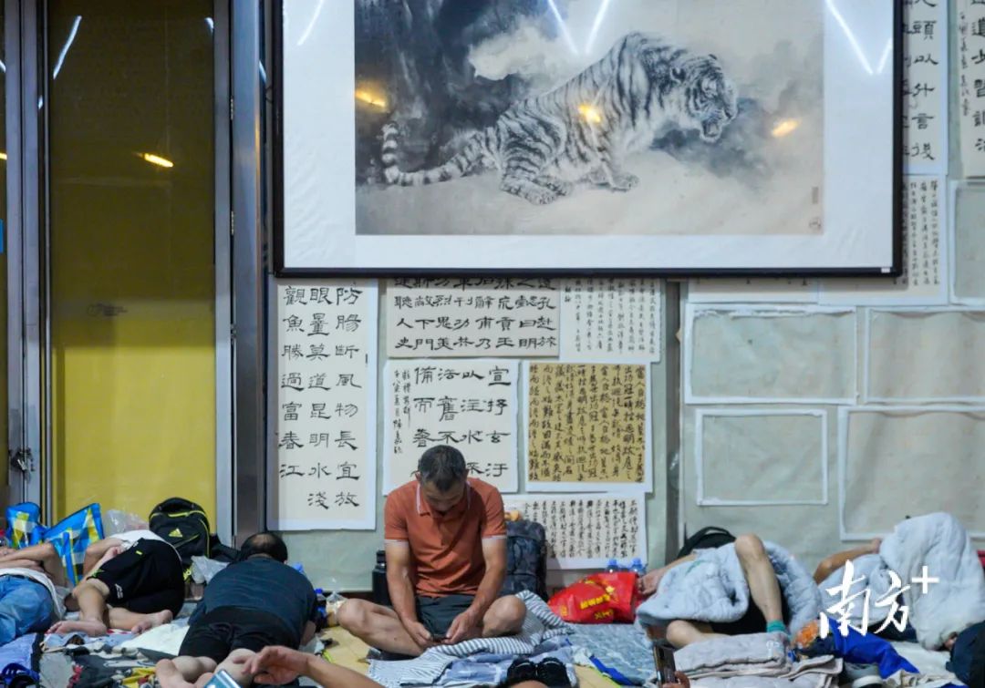 吃完宵夜后,场馆内的灯逐渐调暗,工友们也纷纷躺下,陆续进入梦乡。“红马甲”们将垃圾运出场馆后,又转身返回,在“苏拉”逐渐逼近的威胁中,守护夜晚的安宁。