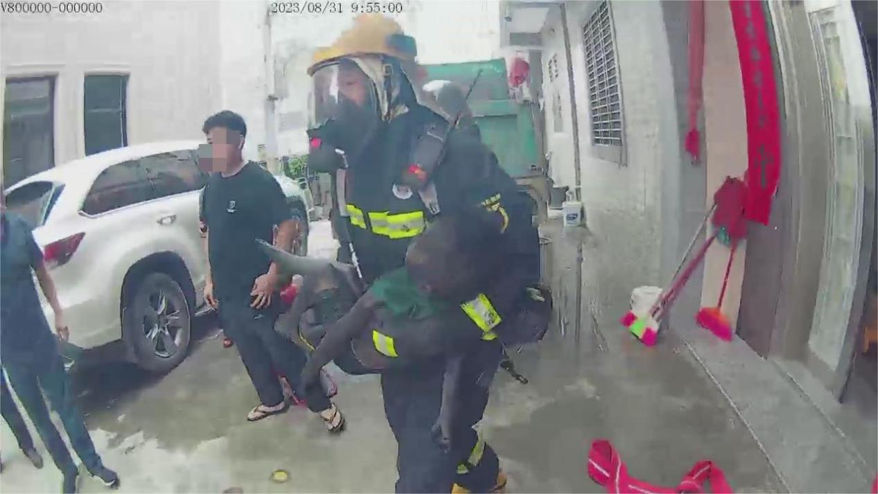 消防救援人员到场后,经侦察发现有一名儿童被困。指挥员迅速成立内攻搜救组深入房子二层进行人员搜索,同时让灭火组对现场火势进行冷却控制。