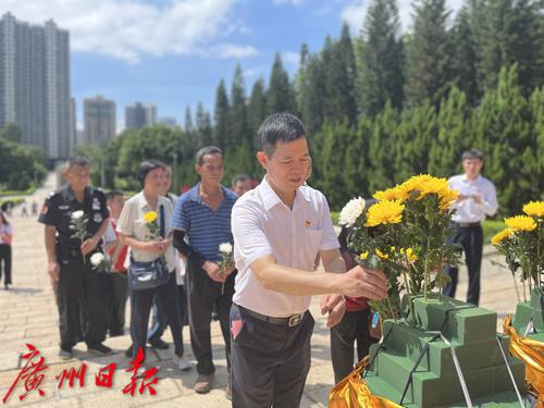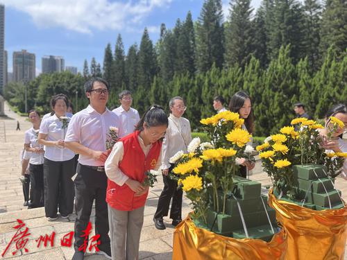 伴随着深情悠长的《献花曲》,各单位代表拾阶而上整理花篮缎带,全体人员向英烈行三鞠躬礼并敬献鲜花,缓步绕行瞻仰先烈纪念碑。