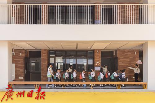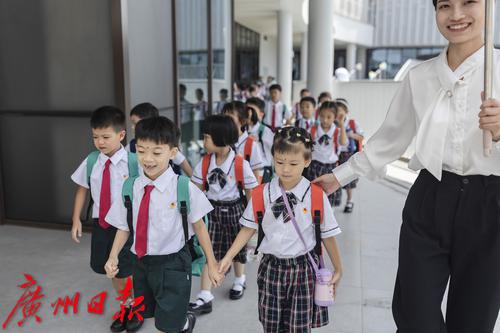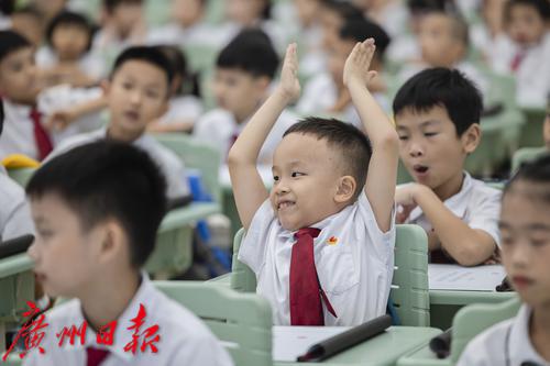 全校师生欢聚一堂,省实少年们迈着欢快的步伐进入校园,有礼貌地向老师行礼问好,老师们亲切点头回应。