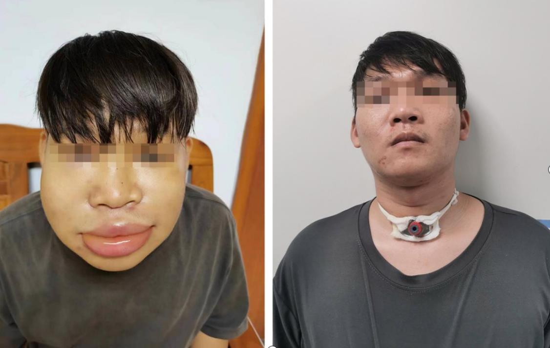2022年9月,中山三院过敏科学科团队接诊一名辗转多地求医的疑难病例患者。年轻的患者两年前开始出现左手不明原因的肿胀,波及双手和头面部,伴胀痛,无瘙痒,外院拟诊“食物过敏”予以对症处理可缓解,但病情反复发作,严重时出现头面部高度水肿而变形, 多次因喉头水肿与死神擦肩而过,颈部气管切开佩戴气管套管,因随时发作而不得不长期留管,无法正常生活。