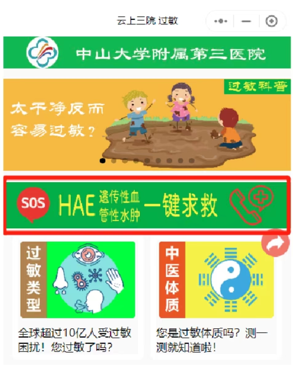 中山三院变态反应(过敏)科积极利用现代互联网技术探索服务罕见病患者新模式,为致死性罕见病——遗传性血管性水肿患者提供了“一站式”解决方案,让HAE患者有了24小时贴身的专业医师。
