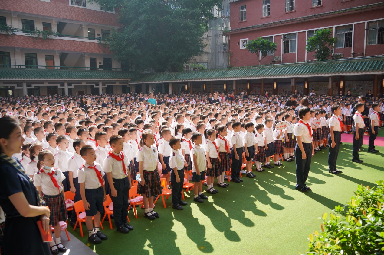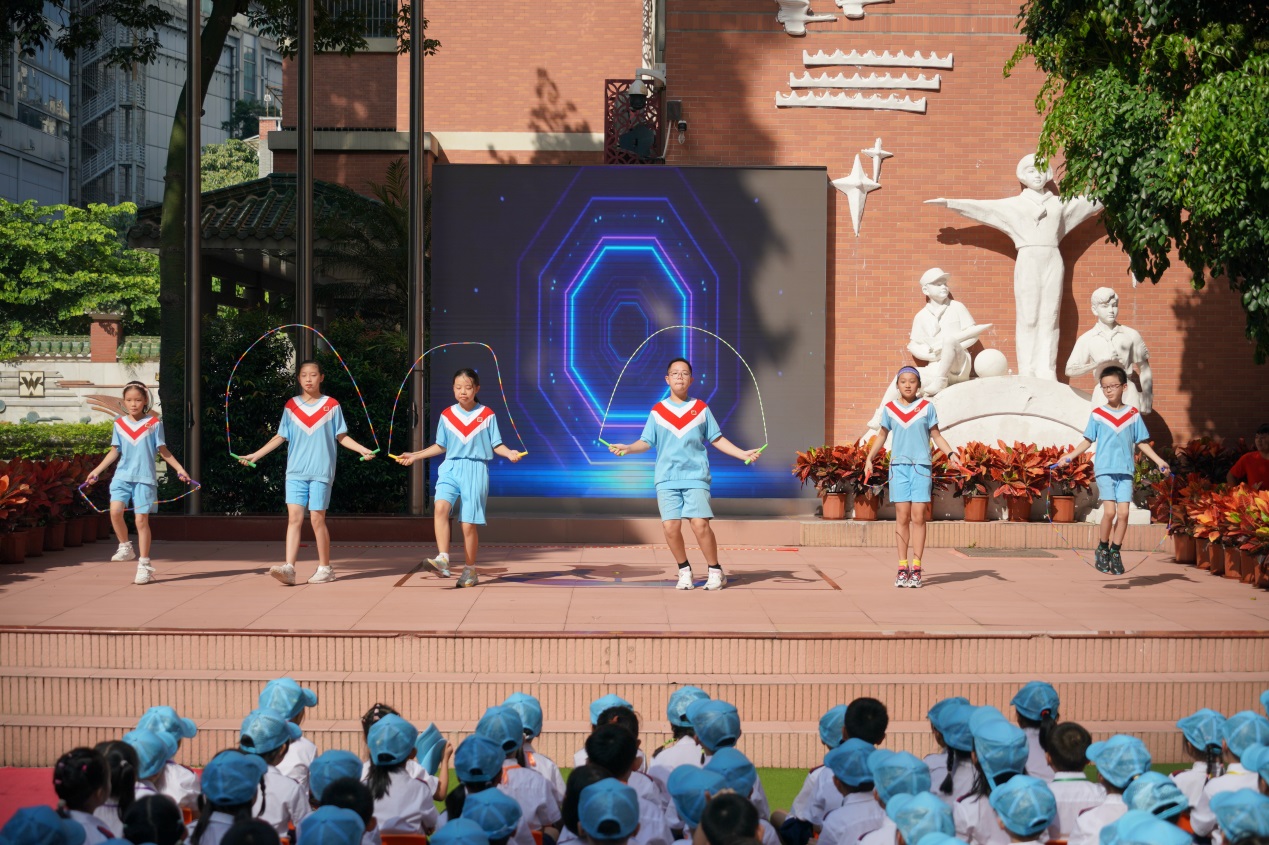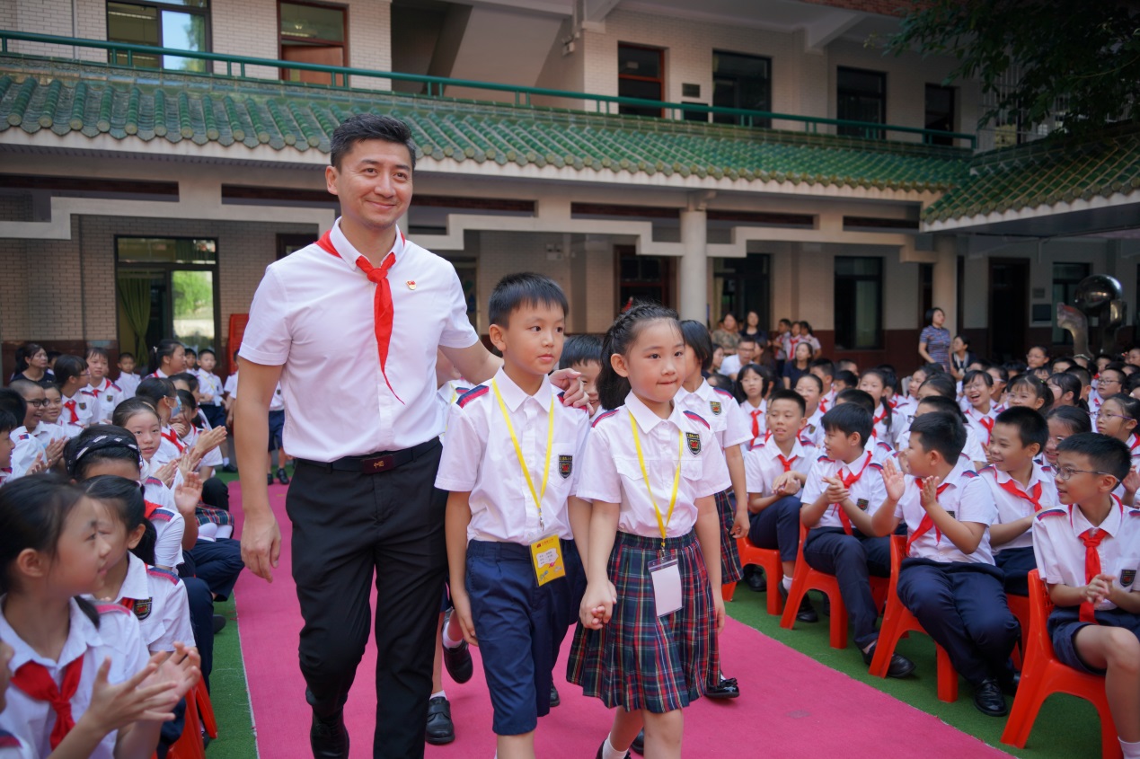 又是一年开学季。金秋九月,伴着明媚的阳光,学生们怀揣着梦想,朝气蓬勃地迈入美丽的校园。9月4日上午,广州市越秀区文德路小学2023学年第一学期开学典礼盛大举行。开学典礼以“文润德泽@未来”为主题,融入2023杭州亚运会的“智能、绿色、节俭、文明”办会理念,为文德师生开启充满活力的新学年,注入了满满的力量。广东省文联主席刘斯奋,广州美术学院副教授刘再行,广东省博物馆副馆长赵丽帆,跳绳世界冠军张崇杨、谢凯宇、陈嘉伟、岑小林等嘉宾莅临活动。