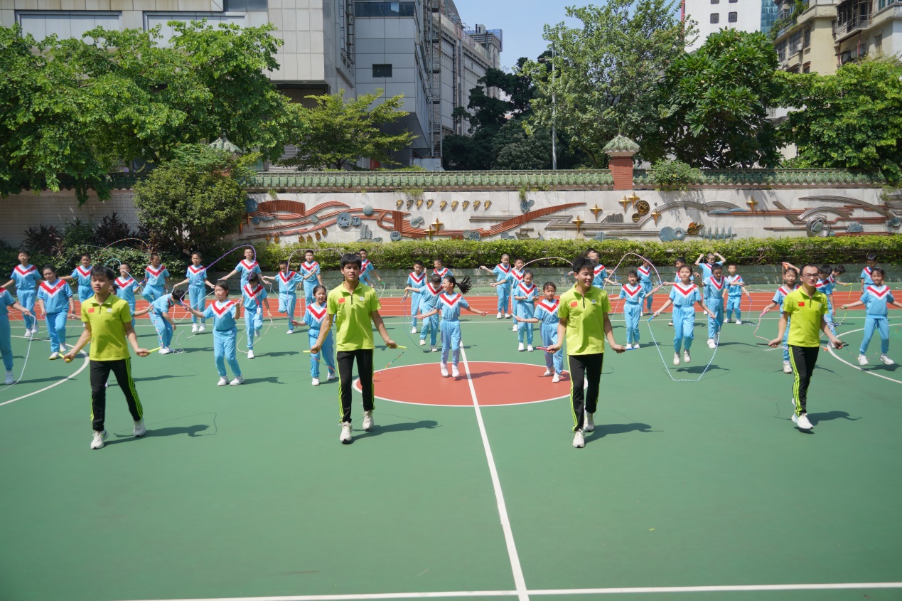 在开学典礼结束后,四年1班的同学们与跳绳世界冠军们同上一节体育课。几位世界冠军在体育课上与鞠凯利老师一起为同学们现场教授了跳绳技巧。学生们积极参与每一项活动,尽情地享受着运动的乐趣。