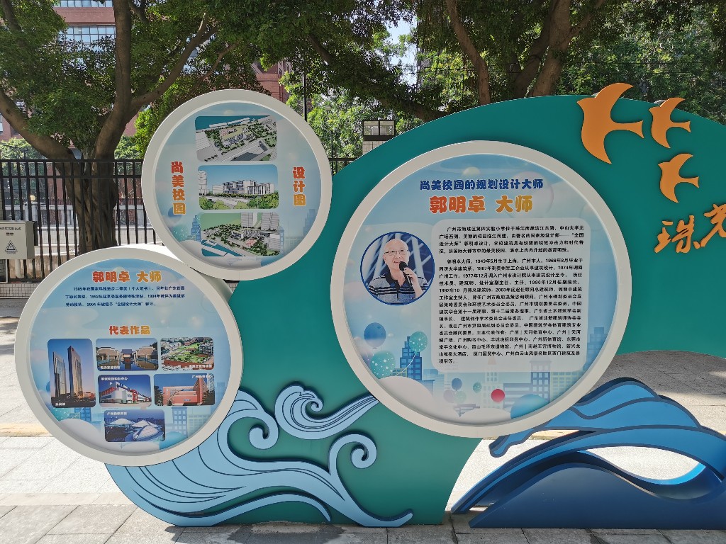 作为海珠区的公办小学,实验四小由海珠区实验小学领办,位于中山大学北广场西侧,校园临江而建,由著名的国家级设计师——“全国设计大师”郭明卓设计。
