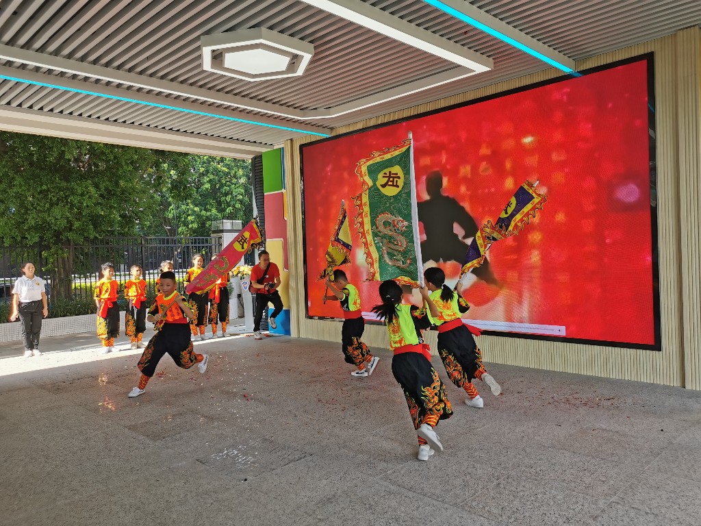 值得一提的是,海珠区实验小学丰富的特色课程也将在实验四小开展。开学典礼上,实验小学武术队的十名同学进行舞狮和武术表演。实验小学武术队温教练介绍,本学期开始,实验四小也将开设武术课程,有兴趣的同学可以参加,经过一段时间的武术基础培训后,也可以学习舞狮技艺。