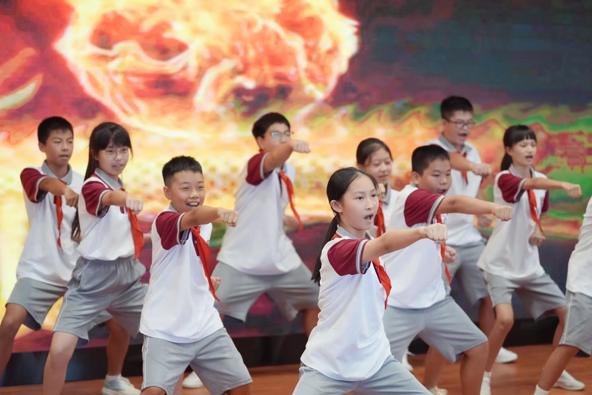 初一的学生们则带来了拳术表演。一勾拳,一横跨,眼神似剑,声响如雷,拳起拳落,一招一式,蕴含坚毅专注,一拳一踢,尽显少年风采,赢得现场阵阵掌声。活动最后,智谷第一实验学校的老师和学生们分别进行宣誓。