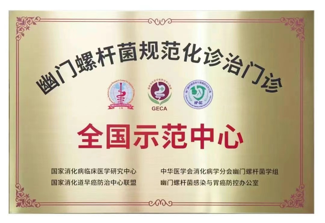 2022年9月,市一消化科团队获广东省唯一一家幽门螺杆菌规范化诊治全国示范中心认证单位。