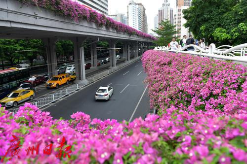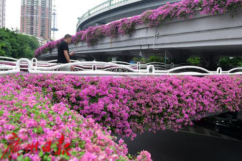 天桥上开满了簕杜鹃。