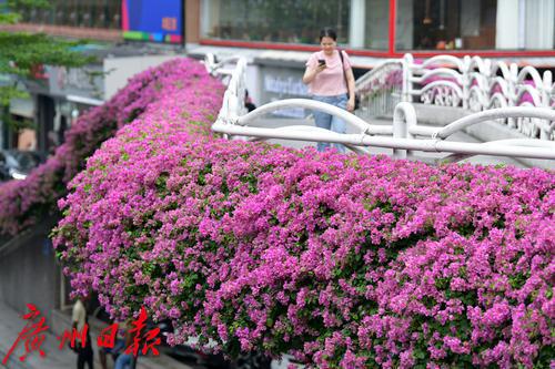 小北路地铁站出口的天桥开满簕杜鹃。