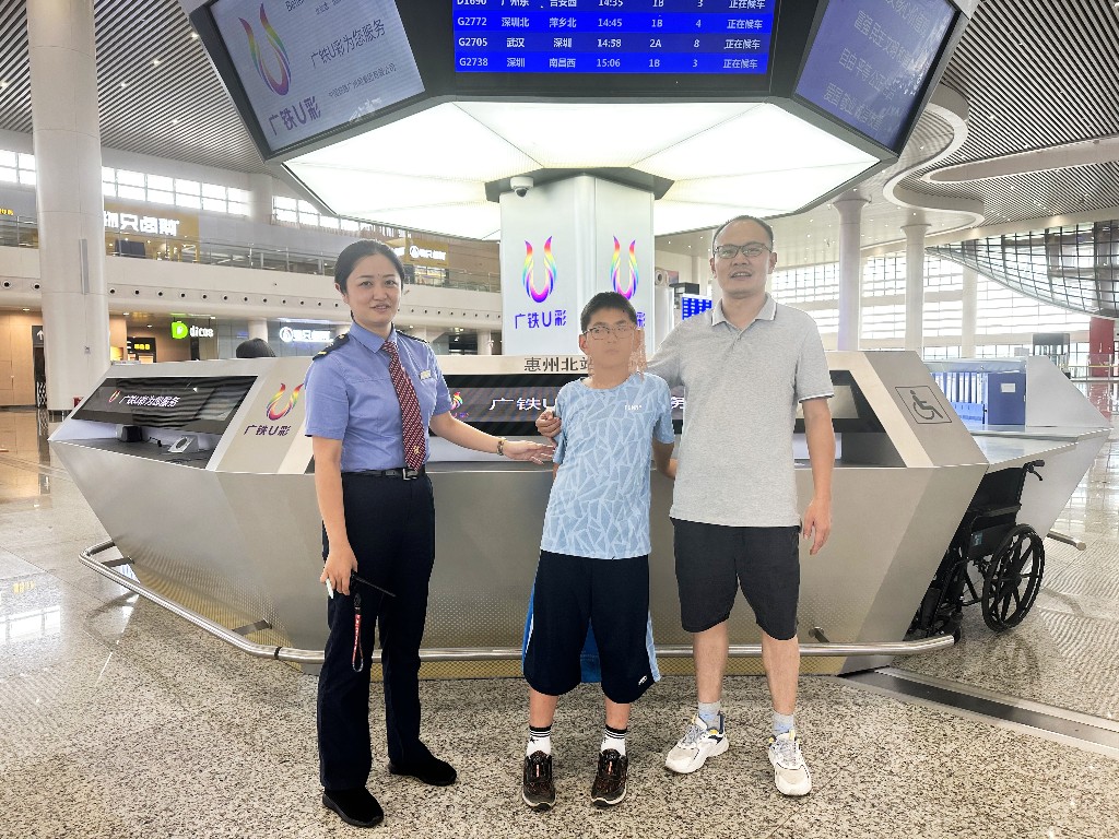 “太感谢了,都怪我自己粗心,造成了这场意外,要不是你们照顾孩子,真要急死了!”9月3日13时50分,10岁的小图图与“走散”4个小时的父亲胡先生团聚,胡先生牵着“失而复得”的儿子,依依不舍地与惠州北站值班员谢林珂告别,离开了这个临时的“家”。