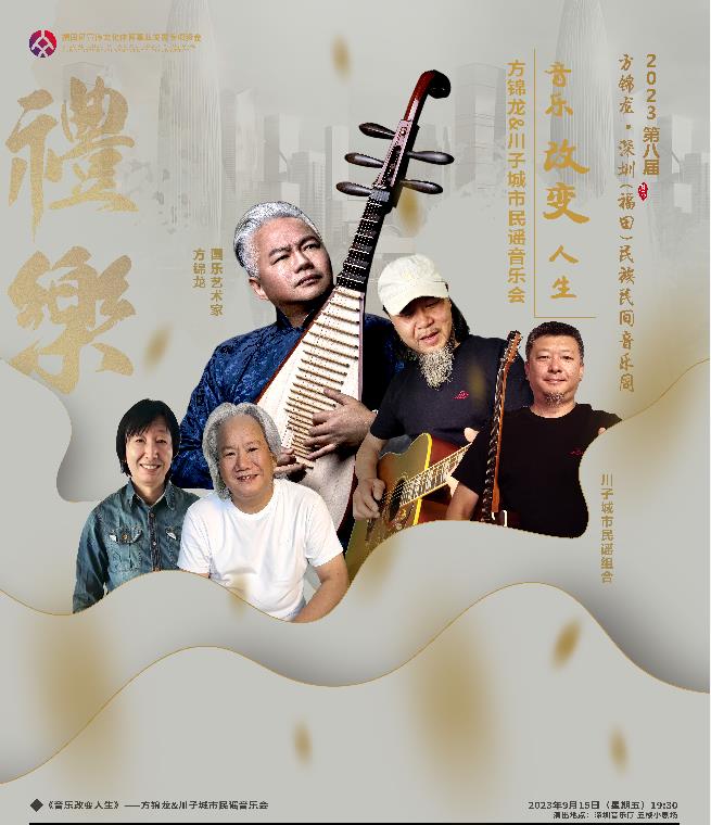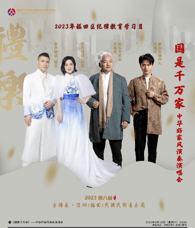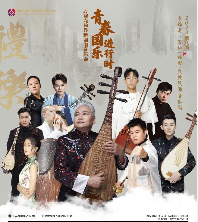 记者今天获悉,2023第八届 “方锦龙•深圳(福田)民族民间音乐周”将于9月15日至17日在深圳举办,将连演三场,分别带来《音乐改变人生》民谣音乐会、《国是千万家》中华好家风演奏演唱会、《青春国乐进行时》方锦龙跨界新国朝音乐会。