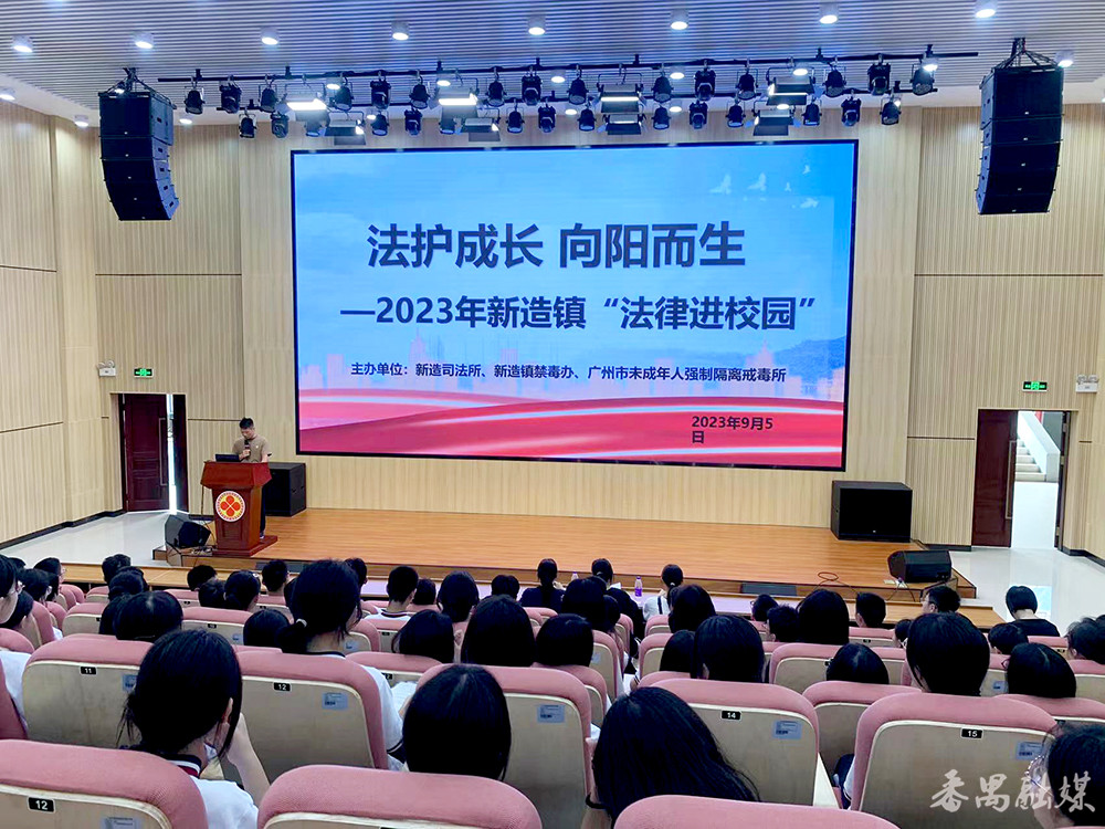 9月5日下午,番禺区新造司法所联合广州市未成年人强制隔离戒毒所、新造镇禁毒办到新造职业技术学校开展法治专题讲座,为三百多名师生上了一堂精彩的法治教育课。