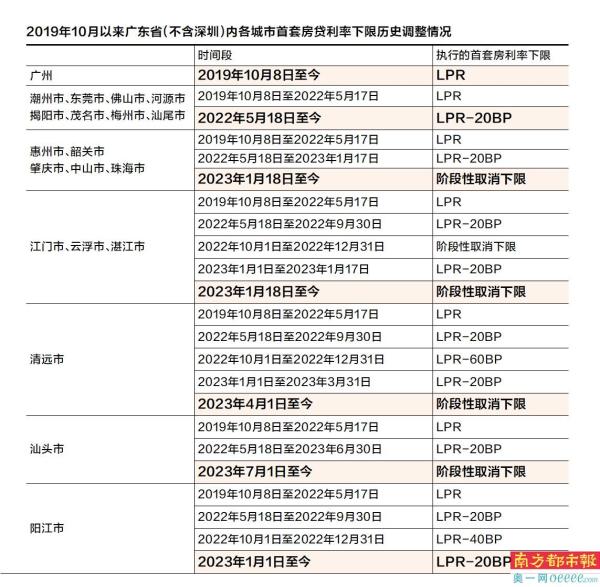 9月1日下午,广东市场利率定价自律机制公布2019年10月以来广东省(不含深圳)内各城市首套房贷利率下限历史调整情况,其中,2019年10月8日至今,广州执行的首套房利率下限为LPR(贷款市场报价利率)。这意味着,广州的存量房贷利率,调整后的利率不能低于LPR。