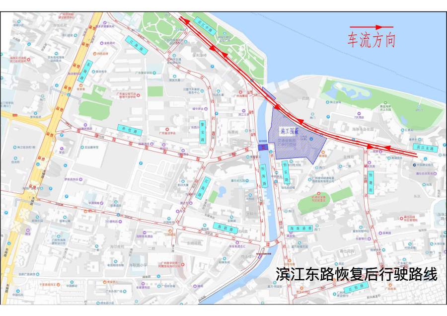 记者从广州地铁获悉,前期为推进地铁十号线滨江东路站建设,施工单位对滨江东路珠江泳场段进行围蔽施工。目前,根据滨江东路站道路恢复的总体施工计划,滨江东路珠江泳场段计划于9月10日零时起恢复通车。