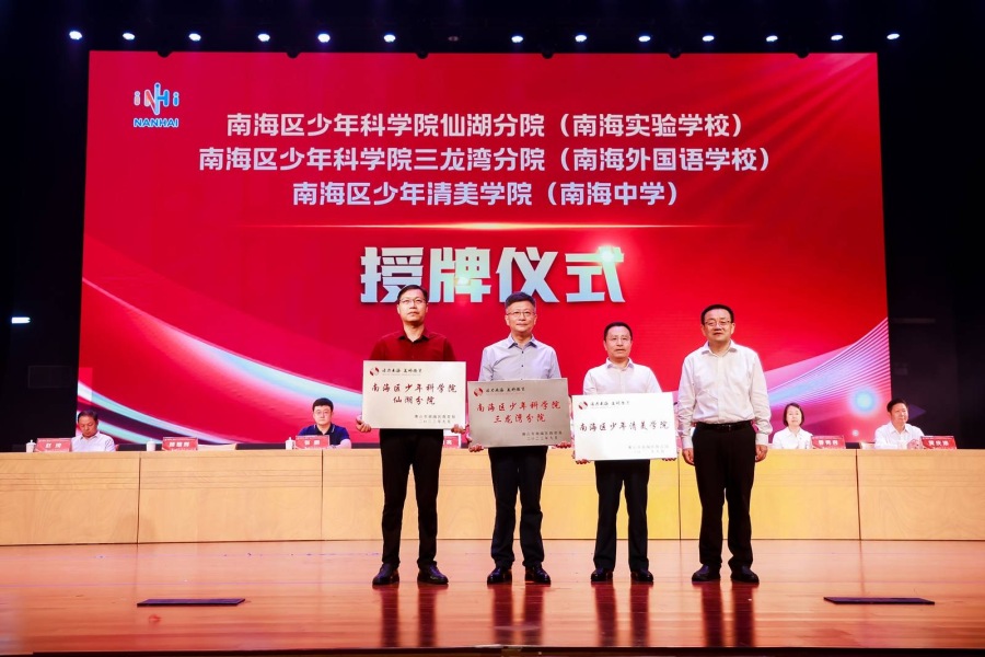 三项授牌仪式也在当日同步举行,大会现场对南海区少年科学院仙湖分院(南海实验学校)、三龙湾分院(南海外国语学校)和南海区少年清美学院(南海中学)进行了授牌。同时还举行了广东省基础教育高质量发展示范区授牌仪式和教育部信息技术支撑学生综合素质评价试点区授牌仪式。