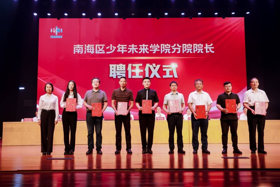 大会还举行了一系列聘任、颁奖、签约、授牌、启动仪式。其中,南海近年来深入实施“少年强基”工程,建设“1+8+N”少年未来学院,构建“小-初-高”拔尖创新人才培养体系,会上为南海区少年未来学院各分院院长颁发了聘任证书。