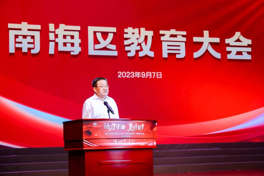 千年南海,崇文尚学,尊师重教。会上,南海区委书记顾耀辉在讲话中表示,南海教育事业呈现强劲发展态势。近7年来(2016-2022),南海新增幼儿园121所、增加学位近4.88万个,完成新改扩建中小学校项目120个、增加学位12.41万个,不断满足人民群众“上好园”“上好学”的需求。