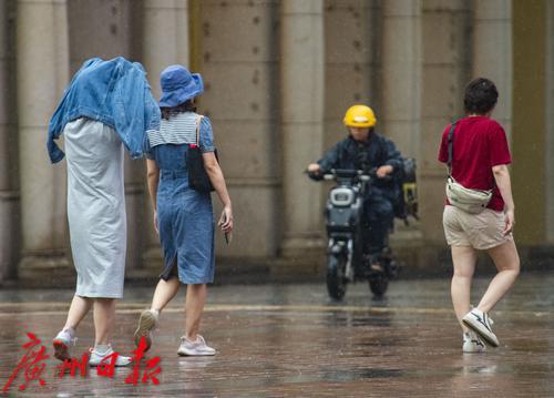 9月7日下午,广州持续降雨,未带雨具的市民冒雨前行。