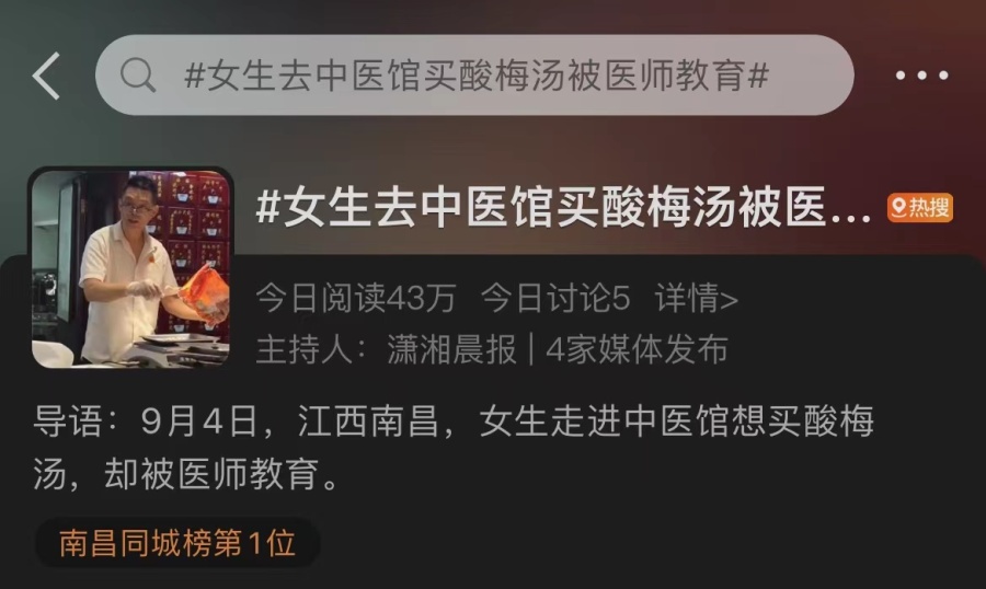 #女生去中医馆买酸梅汤被医师教育#