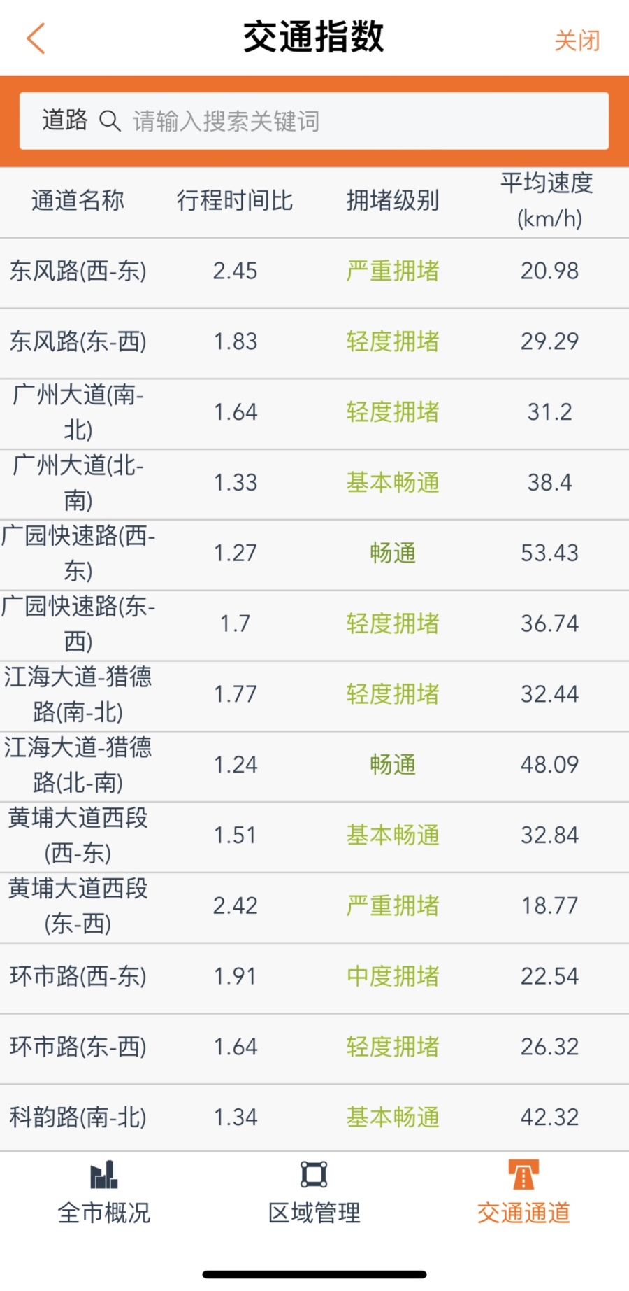 “早上出门的时候雨下得不大,看了新闻推送才知道部分地方昨晚就开始下暴雨,今天多区停课。”家住黄埔的李先生告诉记者。广州交通行讯通显示,8时5分,广州市中心区交通指数为5.7,拥堵级别为轻度拥堵,低于昨天指数。具体看区域交通情况,此时,小北麓湖、环市东沙河、公园前等区域显示为严重拥堵。从交通通道来看,东风路(西往东方向)、黄埔大道西段(东往西方向)等路段出现严重拥堵。
