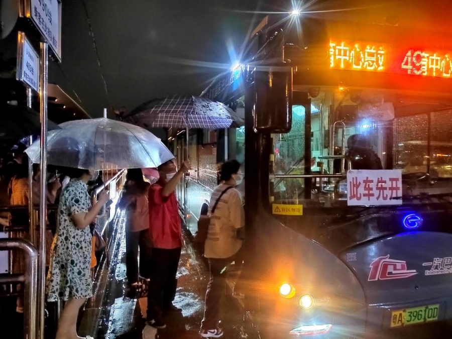 “我们车辆到达总站,要拭擦后视镜,清洗雨刮等,减少暴雨天气对车辆的影响。在中途站如遇到有需要帮忙的乘客,尽自己最大能力去帮忙。”正在动员线路职工做好应对雨水天气工作的16路的线长陈国良说道。